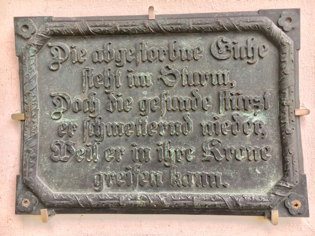Doch was bedeutet ein Kleist-Zitat am Eingang des Friedhofsmuseums? Da hängt eine Bronzeplatte mit den letzten vier Zeilen aus der Penthesilea! Woher stammt diese Platte? Für wen wurde sie geschaffen? Warum Kleist? Warum Penthesilea? Warum in Hamburg? Nirgends ein Hinweis auf die Herkunft!