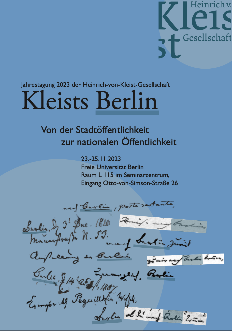 9.30 h Günter Dunz-Wolff (Hamburg): Techniken verdeckten Schreibens in Kleists ›Berliner Abendblättern‹ und die preußische Zensur